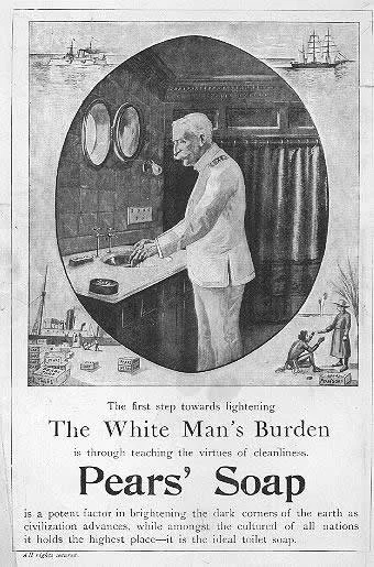 On the other hand, Indian people had darker skin, so they were the opposite, dirty and dark. This carries over into the ideas of Fair & Lovely and the beauty standard of white skin. This also brings up the idea that the British are enlightened and more knowledgeable than the Indians. The idea of the "dark corners of the earth" alludes to the difference in skin color, making the Indian people incorrect and unclean. This also refers to the idea that the British are enlightened and knowledgeable, while Indians are living in the dark corners of the world and need help advancing. These ideas led to the reasoning that the British were helping India by enforcing their ideas because they were correct and enlightened, associating these attributes with whiteness and "cleanliness".